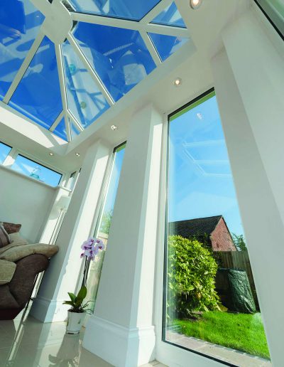 A truly multi-functional glazed extension, the Livin’ Room Orangery creates a pleasant and relaxing space. Built around the well proven Classic Roof, a well-engineered internal framework is added, then plastered, to give a perimeter ceiling all the way round. Down-lighters and even speakers can be added to the new ceiling space giving your new glazed extension a ultra modern look.